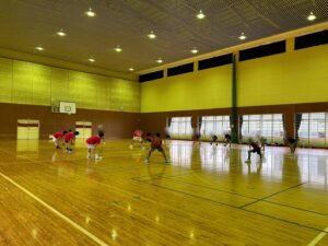 昼から親睦会・夕方には体育館へ移動して通常通りの練習をしました!